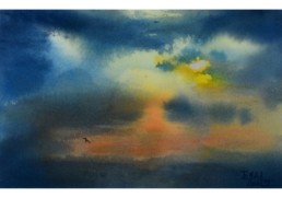 Painted with acrylic, dry pastels and watercolours, these paintings reveal the personality of Nature. Agitated like the storm in an ocean, generous to the fishermen, flamboyant like the million colours it adorns itself with and sometimes just quite as if embracing the moment. And she has captured all of them through her paintings.