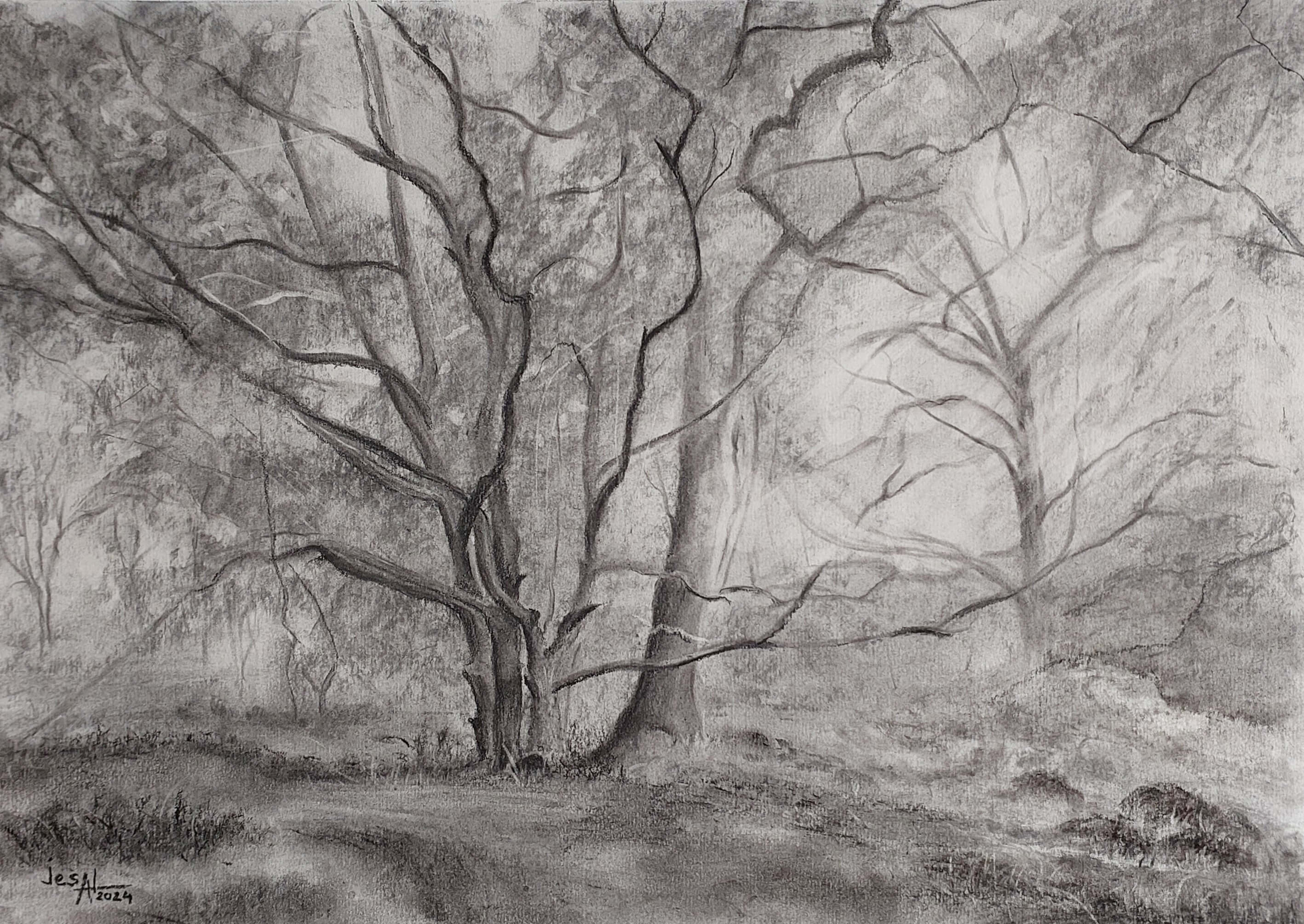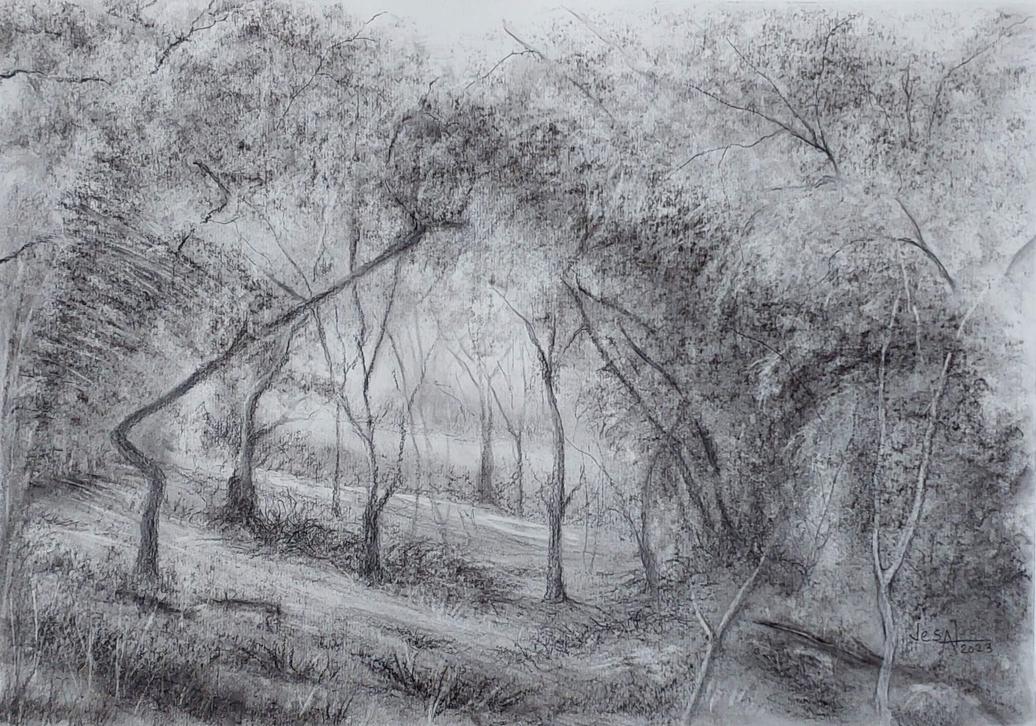 Jesal Dalal’s latest series of charcoal paintings masterfully captures the raw essence of the wilderness. Through a skilled play of light and shadow, each piece evokes the vibrant spirit of nature in its true form. The artworks, a play between light and shadow, Dalal brings out the dynamic contrasts and intricate details of natural scenes, inviting viewers to explore the profound beauty and vitality of the natural world.